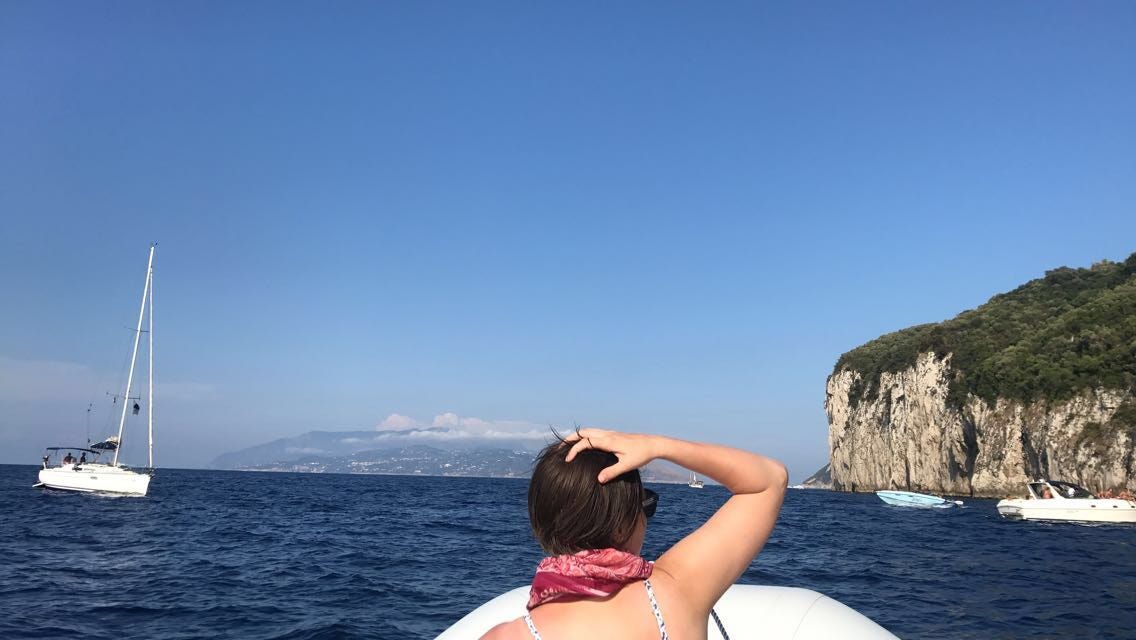 One night, I slept two hours. I didn’t want to go to Capri but I did anyway. I spent the day in a small motorboat with seven people drifting around the towering island, face and skin whipped by wind and salt and the blue burning into the back of my eyes, my body tingling and heavy and adrift like I was in a dream. When we had to swim from our boats to shore for lunch (you cannot dock at Capri in a private boat, only the ferries are allowed that access), I thought my muscles would turn to liquid and float away in the tidal currents breaking on the rocky cliffs, leaving me for dead.